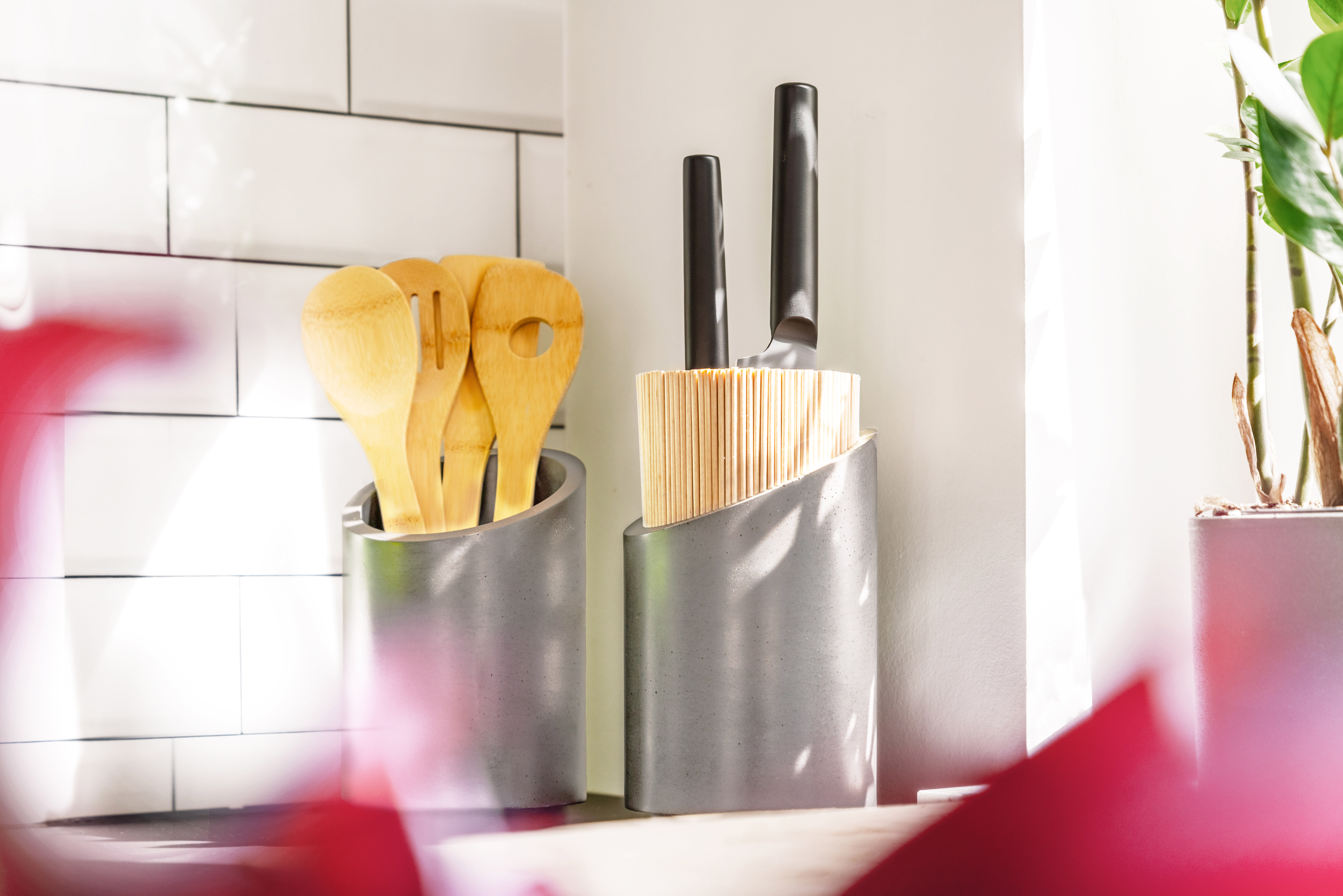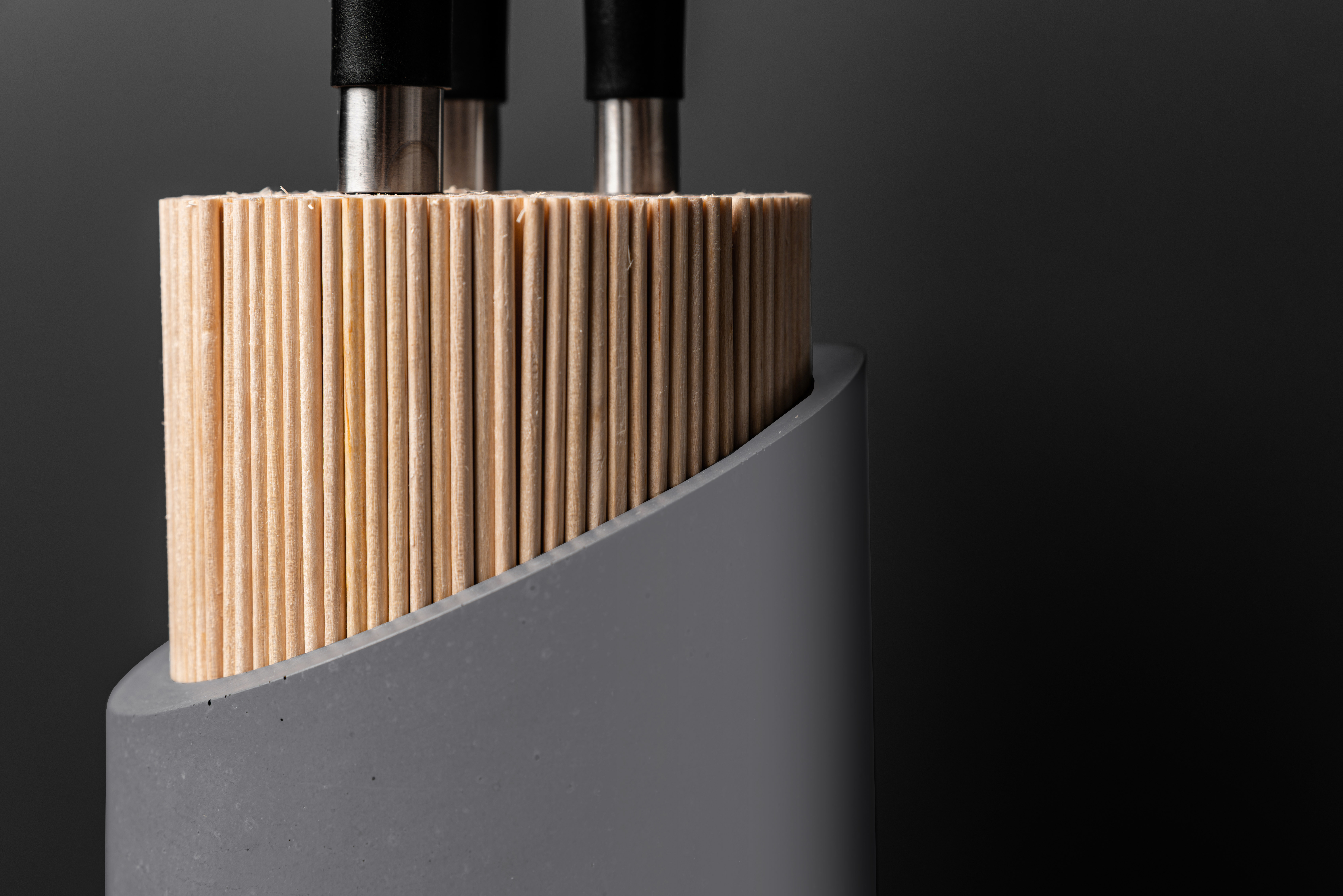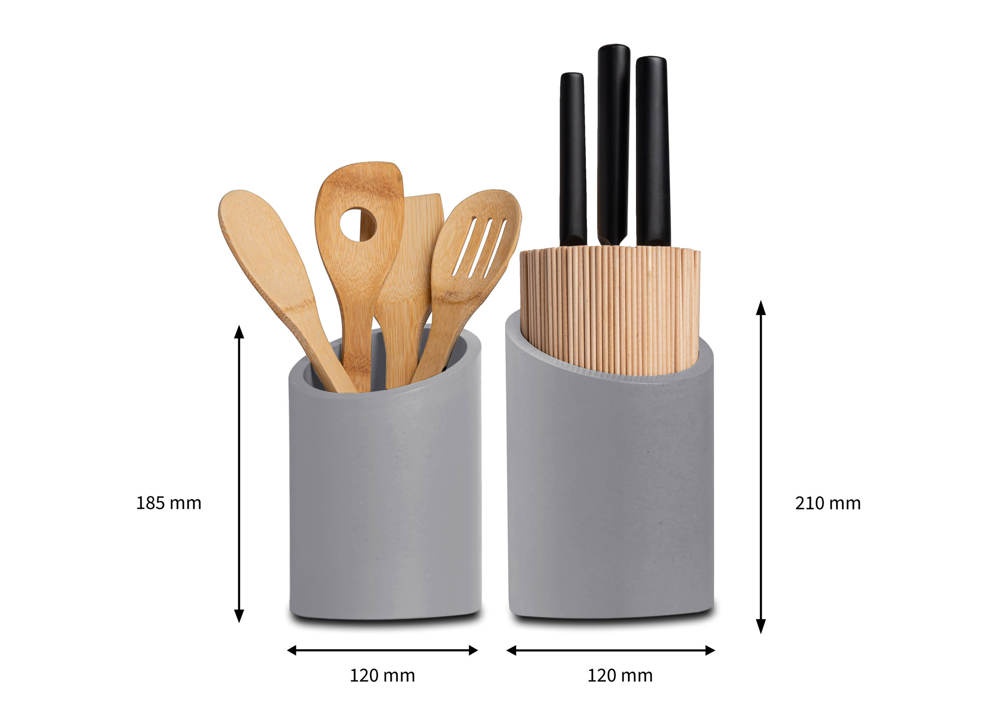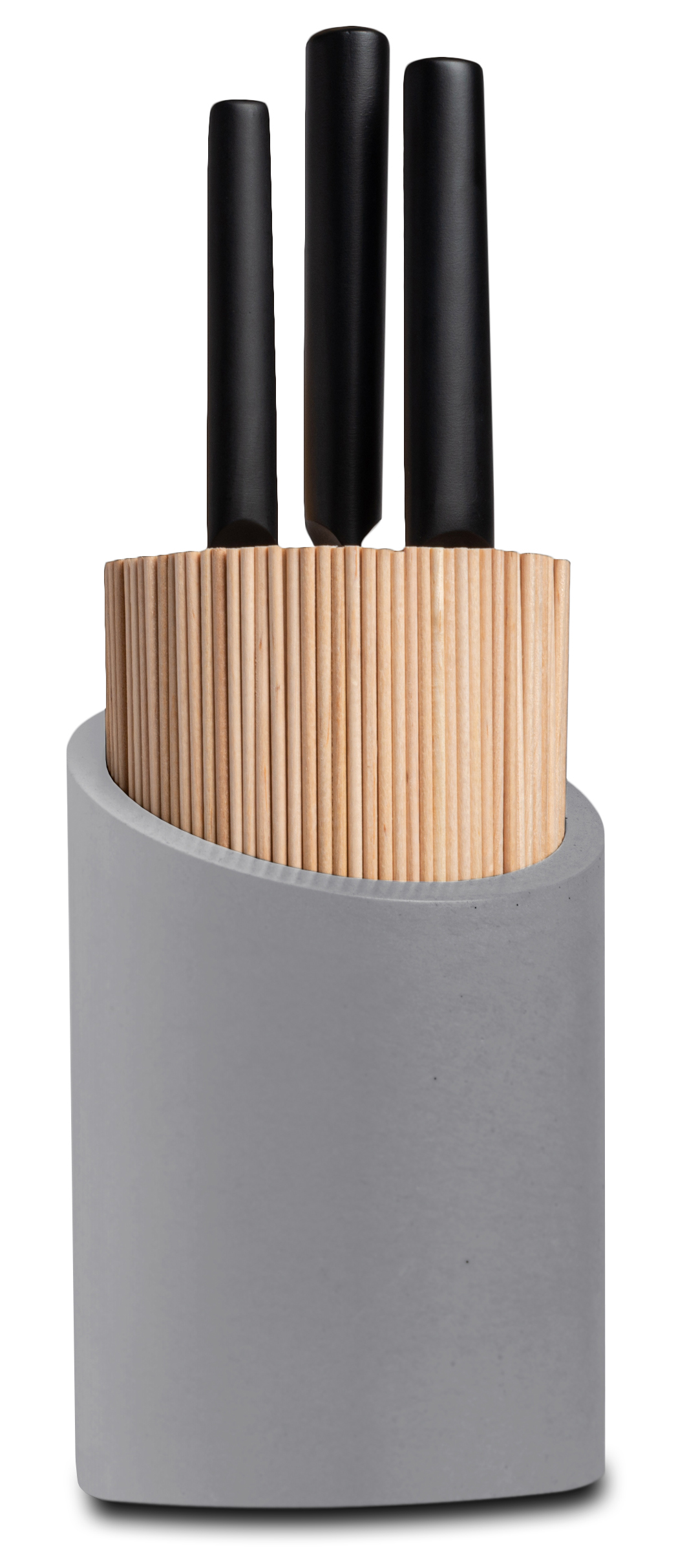 Lieferumfang Messerblock aus Beton mit Messereinsatz aus Bambus (Messereinsatz auch separat erhältlich)