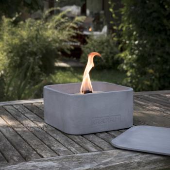 Outdoor-Highlight: Kerze in massivem, eckigem Betongefäß